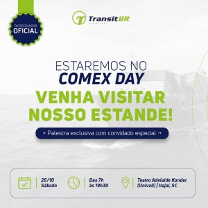 “No dia 26/10, neste sábado, acontece a 4ª edição do Comex Day, na Univali, e a Transit BR já está com a presença confirmada como patrocinadora oficial do evento!